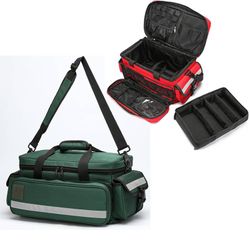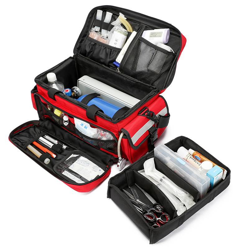 The full size of this first aid kit is 19.7 "x 11.8" x 9.1". Provide sufficient space for various pill bottles, and emergency needs. The main interlayer is equipped with 3 detachable partitions, which can divide the room into 4 parts. The detachable design allows you to fully utilize the room and keep clean, so you can easily find products. Made of high-quality Oxford fabric, with encrypted seams and thicker lining, this bag is durable. It also comes with reflective webbing and metal zipper.