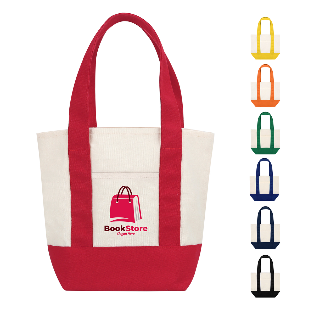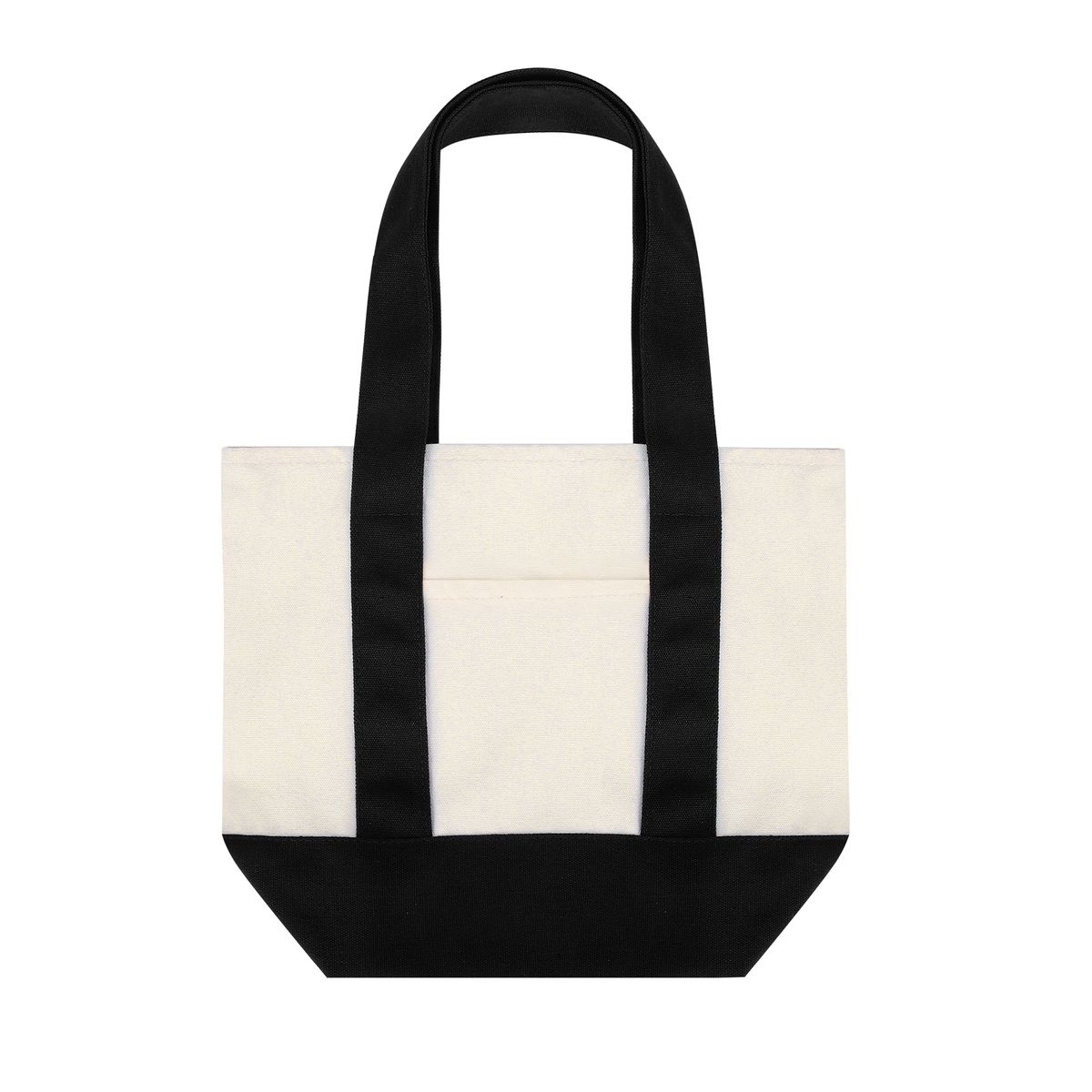 This durable, high quality boat tote bag is crafted from high-quality 12 oz poly-cotton, featuring a convenient front pocket for easy access. With its colorful handle and matching bottom panel, it combines style and practicality for any occasion. Whether you're commuting, traveling, heading to a retreat, enjoying a picnic, or spending a day at the beach, this versatile bag is perfect for carrying your personal items with ease.