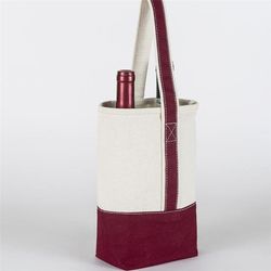 Two wine carrier pockets are each roomy enough to fit two standard-size wine bottles upright. handles make the wine bag easy to carry. Extra-thick padding secures the wine tote bottles in place keeping them from clanging together. Attractive wine carrier makes it great for use with travel, picnics, beach days, and more. Foldable canvas material offers easy storage.